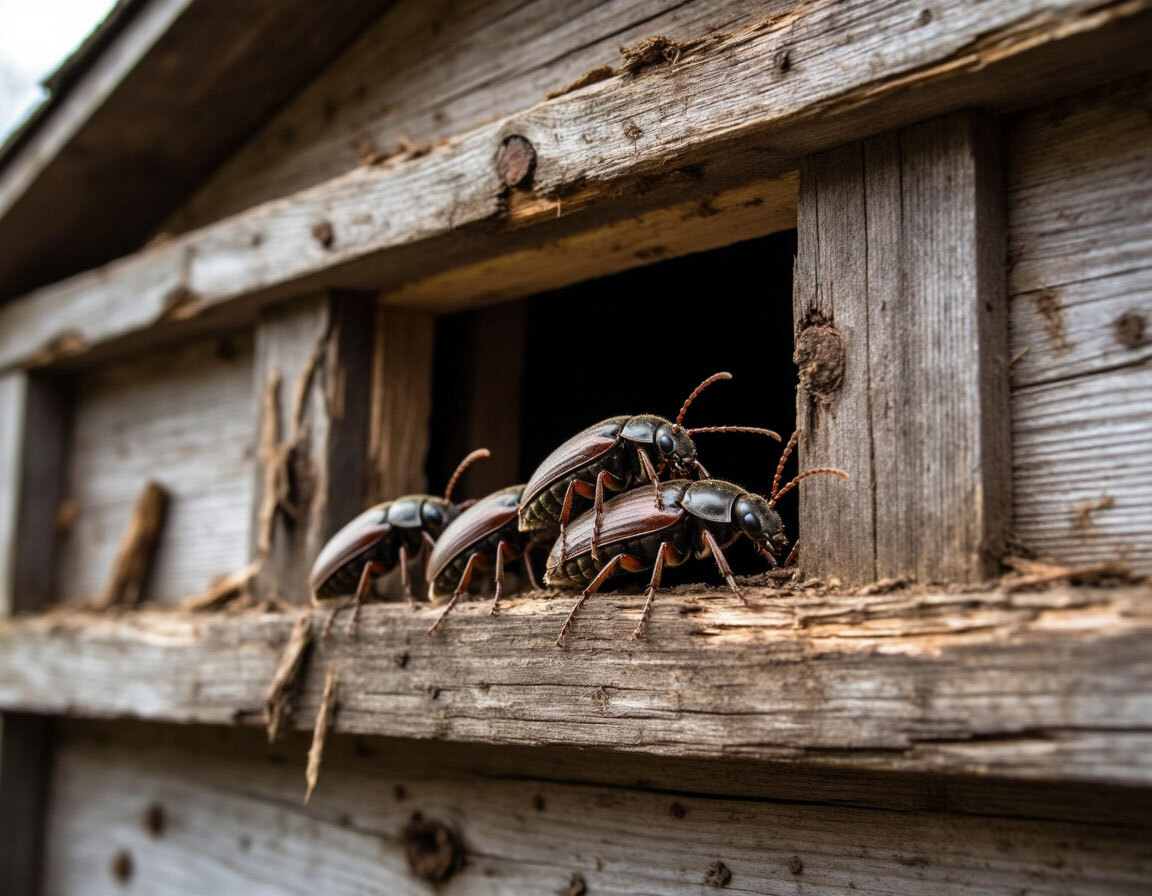 Древоточцы (или точильщики) — одни из самых опасных вредителей деревянных строений. Эти жуки проделывают ходы в древесине, ослабляя конструкции и приводя к их постепенному разрушению. Заметить их вовремя непросто: видимые признаки появляются лишь спустя месяцы или годы после заражения. В этой статье — как выявить древоточцев на ранней стадии, эффективные способы борьбы и меры профилактики для сохранения вашего дома.