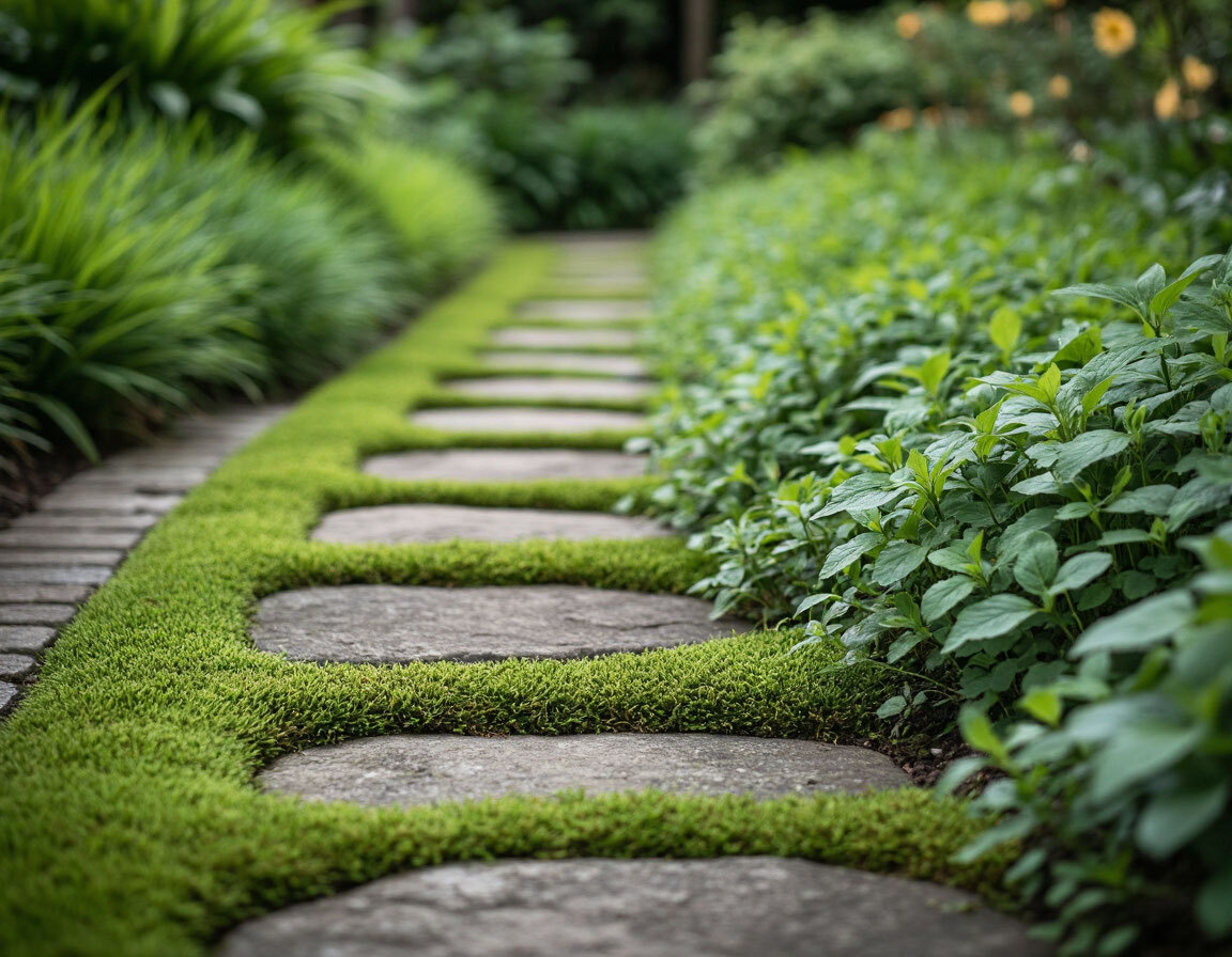 - Тень и влажность — дорожки в затенённых зонах быстрее зарастают.